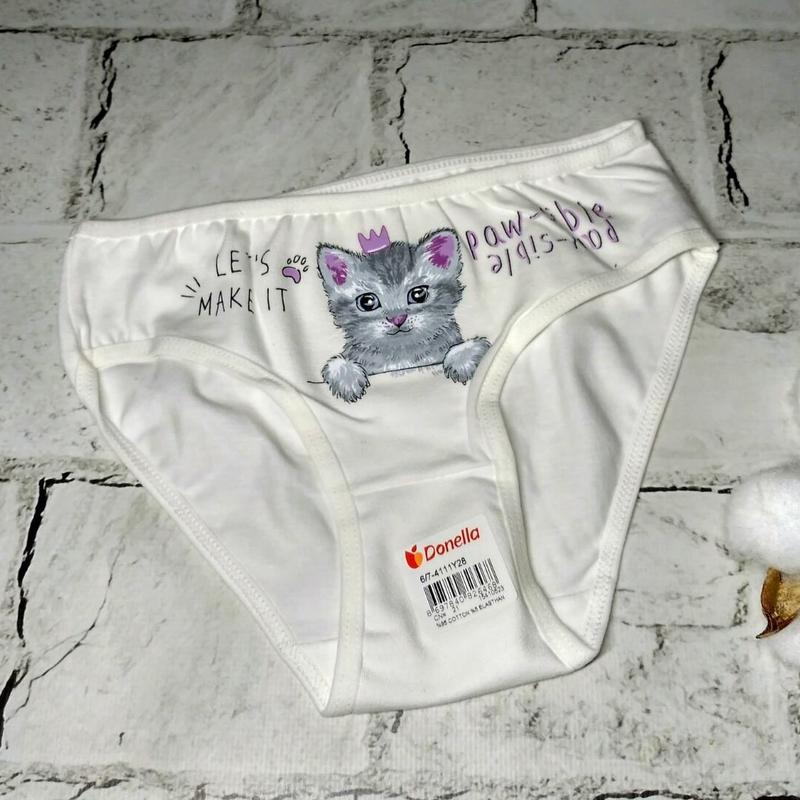 Детские трусики donella для девочки хлопковые трусы девочке 122-128 см 6-7 лет котик молоч...