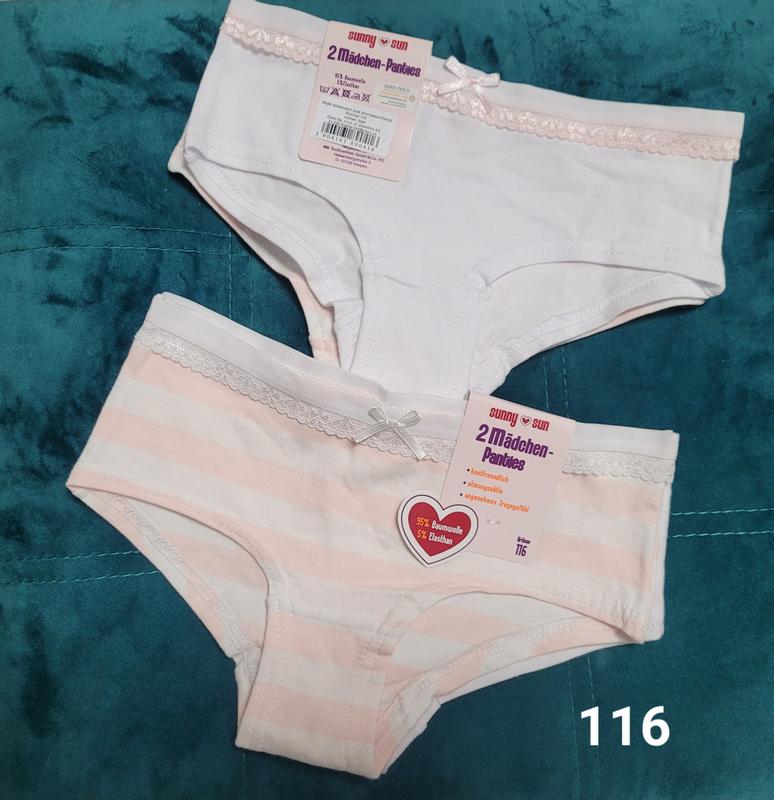 В наличии наборы трусиков для девочек из 2 шт. Размеры присутствуют на 116, 128, 140, 152, 164 см. На фото присутствуют цвета наборов соответствующего размера. Новые. цена за набор.