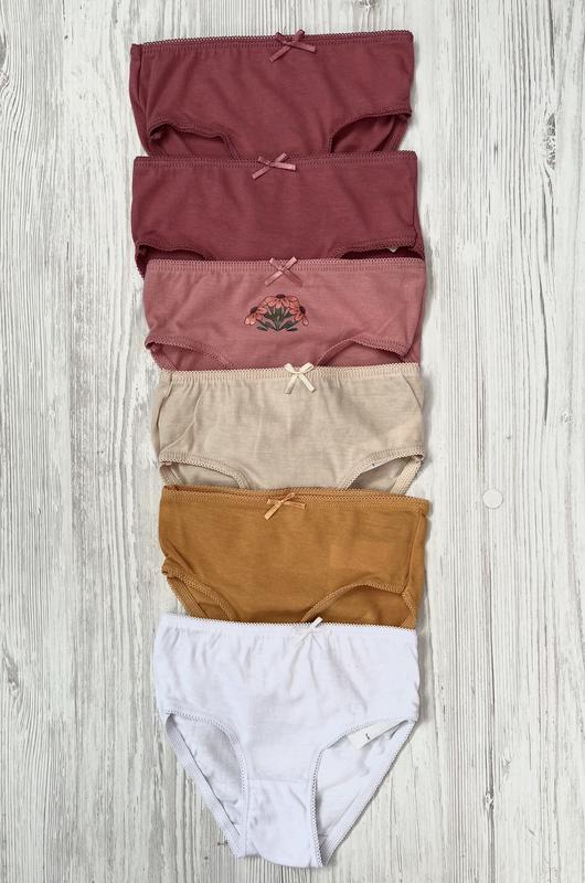 Яскравий набір трусиків для дівчат 🌸 100%Cotton Напів обхват пояса -21 см Посадка-18см В комплекті 6 шт Розмір-98-104(3-4роки) Можна придбати поштучно - 60 грн/шт.