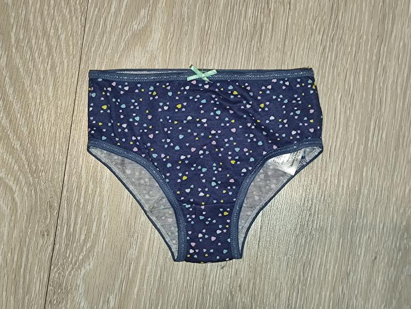 Фирменные трусики для девочки на 4-5 лет. Тканина 100% бавовна. Стан- новые, но не имеет бумажных броков (люксовый секенд) Замеры: высота 18,5 см, талия 22,5 см, ширина проймы для ноги 16 см
