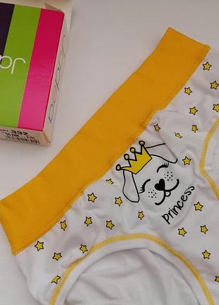 Дитячі трусики сліп з бавовни з еластаном, з принтом на передній частині; краї оброблені трикотажною тасьмою, зручні, комфортні. Склад: 93% бавовна, 7% еластан Упаковано в оригінальну коробочку по 1 шт. Розмір на вік 9-10