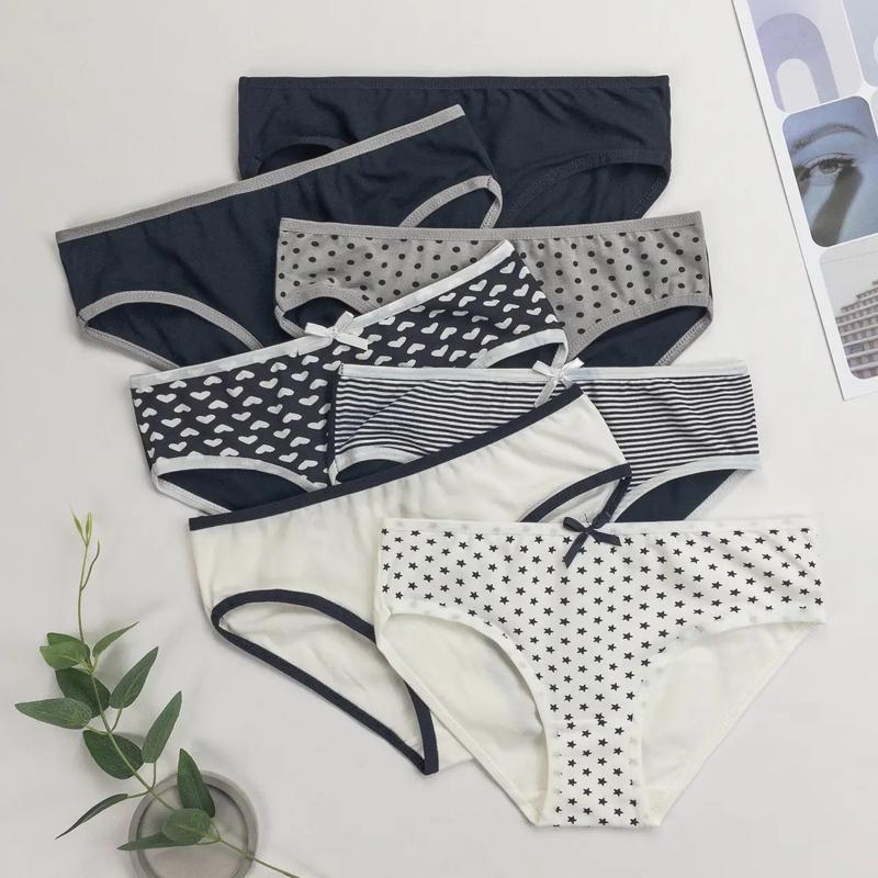 Набор детских трусиков-недельинок для девочек (7 шт) Комфортные, качественные и яркие – эти трусики станут идеальным выбором для ребенка. В наборе 7 пар трусиков с милыми узорами, что делает их не только практичным, но и стильным дополнением гардероба маленькой модницы. Особенности: ✔ Набор на неделю – 7 пар трусиков с разными принтами, чтобы каждый день приносил радость. ✔ Натуральный состав - 95% хлопок, 5% эластан. Ткань мягкая, дышит, не вызывает раздражений. ✔ Удобный крой – трусики не стесняют, хорошо сидят и не сползают. ✔ Приятные к телу резинки – эластичные, но не давят, обеспечивая максимальный комфорт. ✔ Практичность и долговечность – не теряют форму и цвет после многочисленных стирок. Замеры (длина резинки / высота трусов / боковой шов): 3 года - 23 см / 17 см / 6 см 4-5 лет – 24 см / 17 см / 6 см 6-7 лет – 25 см / 18 см / 6 см Почему стоит выбрать этот набор? Трусики выполняют важную гигиеническую и защитную функцию, обеспечивая комфорт и свободу движений. Благодаря мягкой натуральной ткани и удобному крою они станут любимым бельем вашего ребенка. Яркие рисунки и нежные цвета подчеркнут детскую безмятежность и добавят хорошего настроения на каждый день. 40495