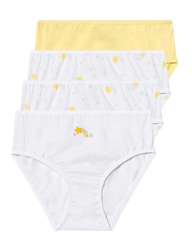 Приятные и качественные трусики слипы для девочек. Цена указана за набор из 4-х штук. В наличии: 110/116 Замеры: Пояс полуобхват 24 см Бедра 29 см Посадка 19 см