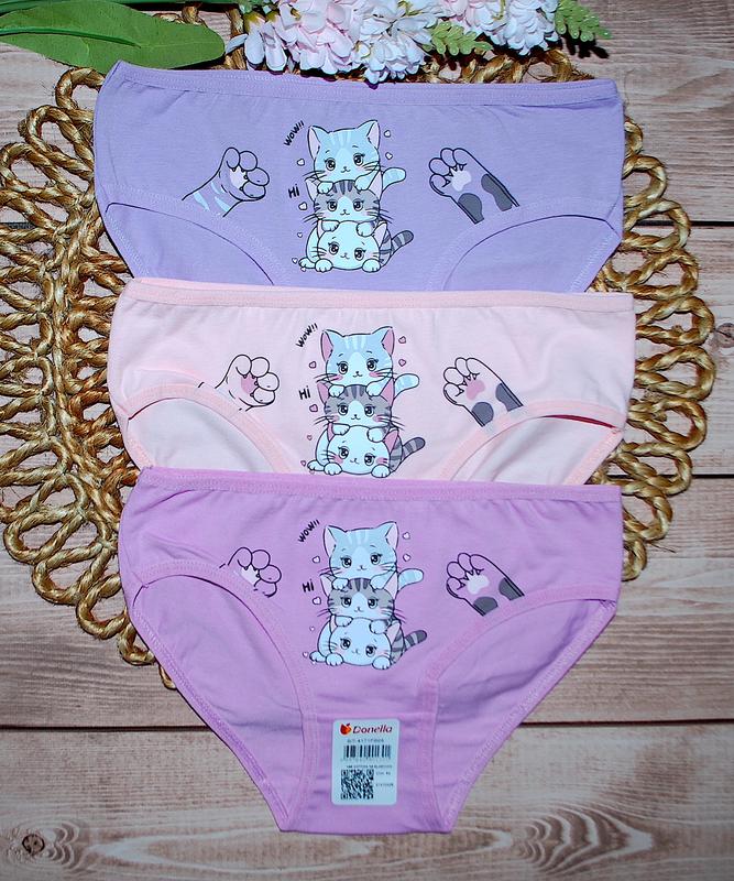 трусики резинка 23х2 см, высота 19 см розовые резинка 24х2 см, высота 19,5-20 см персик, фиолетовые размер 6-7 рост 122-128 В наличии трусики на девочку производства Турции фабрика Donella за складом 95% бавовна + 5% еластан