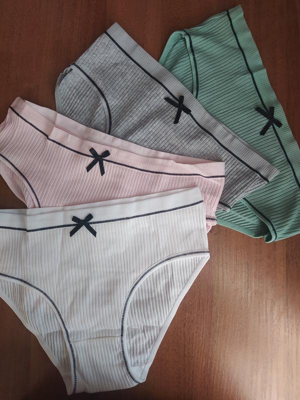 Бавовняні трусики з трикотажу в рубчик. Склад: 95% бавовна, 5% еластан. Розміри в наявності: XS: ОТ - 62-66 см, ОБ - 87-91 см S: ОТ - 66-70 см, ОБ - 91-95 см