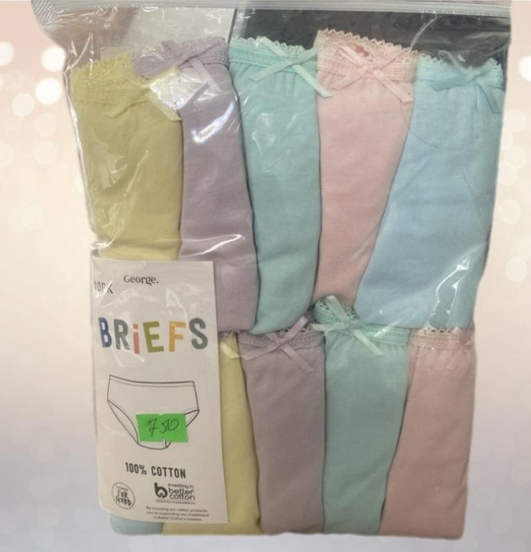 Набір дитячих трусиків для дівчаток. У наборі 10 шт. Трусики однотонні. Тканина: 100% бавовна. Вік: 9/10 років на зріст 135 - 140 см Довжина пояса: 25 см., тягнеться до: 28 см