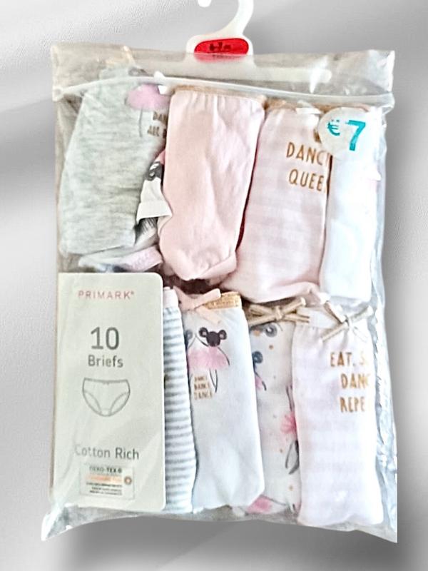 🌸 Комплект трусиків Primark для дівчинки на 6-7 років🌸 У наборі: 10 трусиків з милими принтами, серед них — балерини . 📏 Розмір: 122(6-7р.) ✨ 100% бавовна – м’які та приємні до тіла 🌿 ✨ Зручна посадка, дихаючий матеріал ✨ Ніжні та яскраві принти для маленьких модниць 💕 📦 У наявності – відправка одразу після замовлення 🚚 Доставка по всій Україні (Нова пошта / Укрпошта)