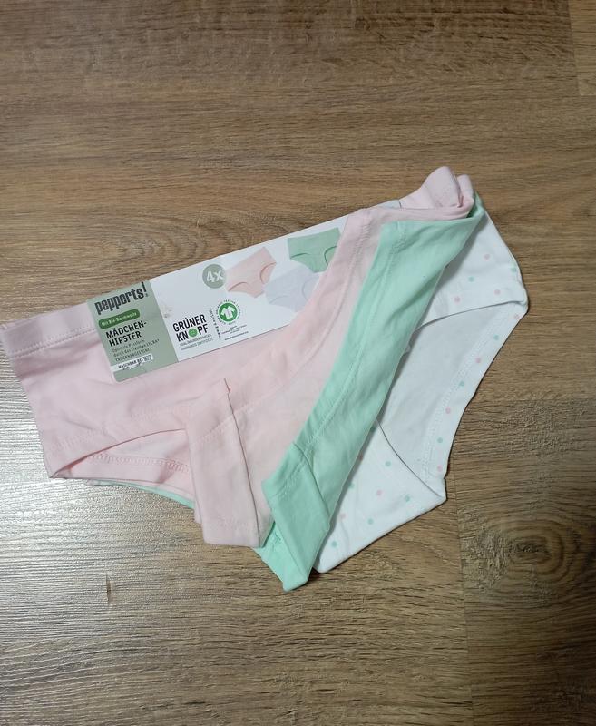 комплект из четырех штучек трусиков на девочку от брендового производителя peppers Германия в размере 146-152 на 10-12 лет. Талия по резинке -28см. длина бокового шва -9см. посадка спереди -20см