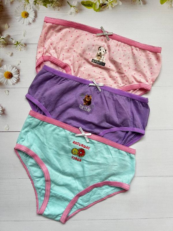 Набор трусиков слипов на девочку. Производитель: Primark (Англия). Размеры: 110 (4-5 лет). Состав: 100% хлопок. Качество красивое, трусики мягкое, приятное на ощупь. Цвет: разные цвета. Цена 135 грн. за 3 штуки (комплект).