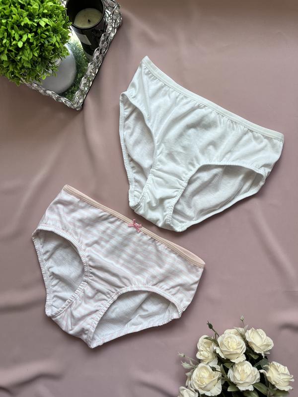 ✨розмір 134/140✨ заміри 👇 Трусики для дівчаток від H&M 100% бавовна По резинці 24см, тягнеться до 39 та 43см, висота 20см Ціна вказана за 2 трусиків