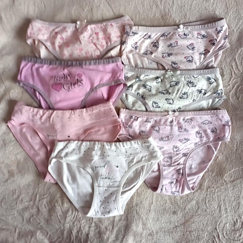 хлопковые трусики для девочки в красивом состоянии без прядей и повреждений резинка не растянутая бренды Donella Primark чисто выстиранные пол окружности в бедрах 23 см высота 18 см продаж от трех штук или лотом цену указую за одни