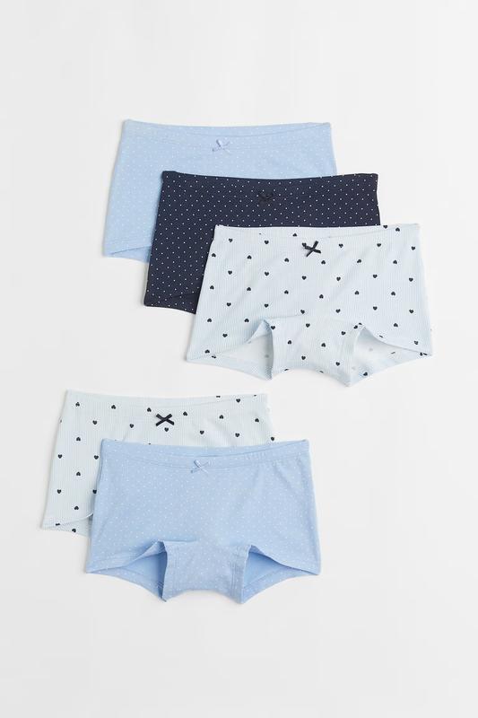4-6/6-8 р H&M Набор натуральные трусы трусики боксеры девочке 5 шт Цена официального сайта производителя 529 грн наша же всего 495!! Трусы-боксеры из мягкого хлопкового трикотажа с различными дизайнами. Эластичный пояс и подкладка в ластовице. Склад 95% бавовна 5% еластан Тканина: Трикотаж супрем Материал: Содержит высококачественный хлопок Склад: 5 шт. В упаковке Цвет: синий / разноцветный - 4 - 6 года 110 - 116 см - 6 - 8 лет 122 - 128 см Пересылаю укр и новой по почте самовывиз в Киеве Обмен или возврат не предусмотрен