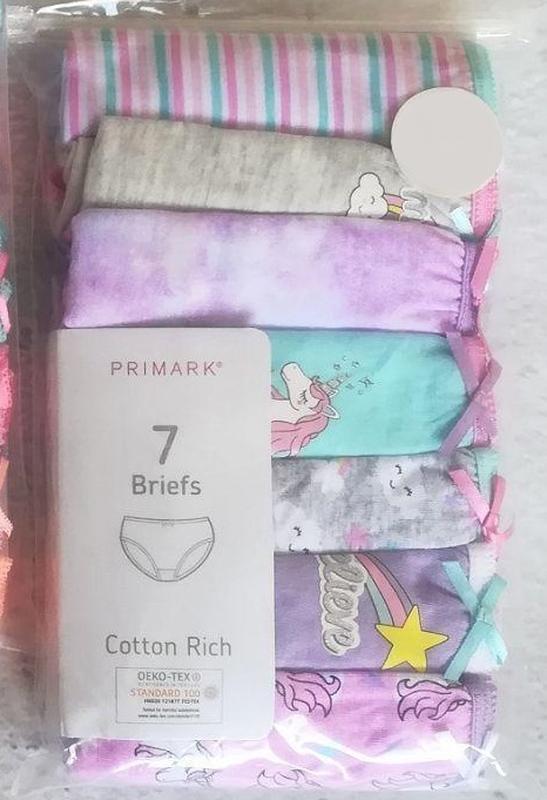 Размер 152 см (11-12 лет).Продаются поштучно* и упаковкой. Цена указана за 1 трусики. Трусики с единорогом для девочки Primark, в комплекте 7 шт. разного цвета. При покупке поштучно трусики будут без бирки и упаковки. Без торга. Задавайте вопросы до оформления и оплаты заказа. Нижнее белье обмену и возврату не подлежит! 100% оплата на карту Приватбанка или наложенный платеж Новой почтой по предоплате. Возможна оплата наличными при самовывозе. Доставка: Новая почта день в день - если заказ оплачен до 12-00. Укрпочта по вторникам и четвергам - если заказ оплачен до 9-00. Воскресенье выходной.