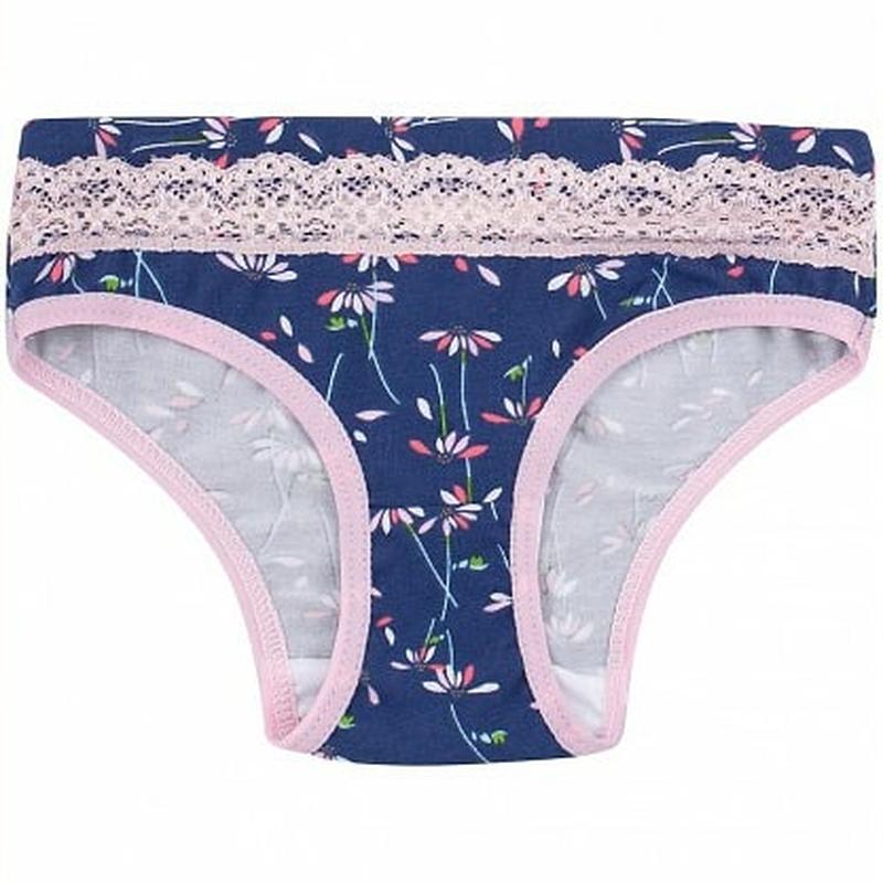 Принтовані трусики з ластовицею для дівчинки. Верх оброблений мереживною тасьмою, краї оброблені бейкою. Дуже ніжна тканина супрем. Доступні в розмірах 92, 98, 104, 110, 116 - 53 грн 122 - 57 грн є ще в рожевому кольорі