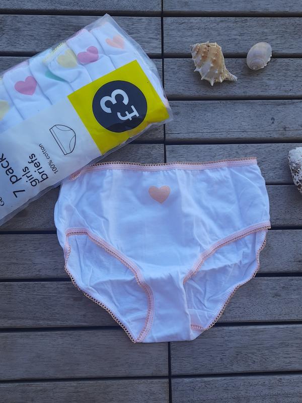 детские трусы для девочек George. комплект из 7 шт РАЗМЕР: 6-7 ЛЕТ МАТЕРИАЛ:ХЛОПОК ЦВЕТА: желтый(2), зеленый(1), розовый(2), лососевый(2)