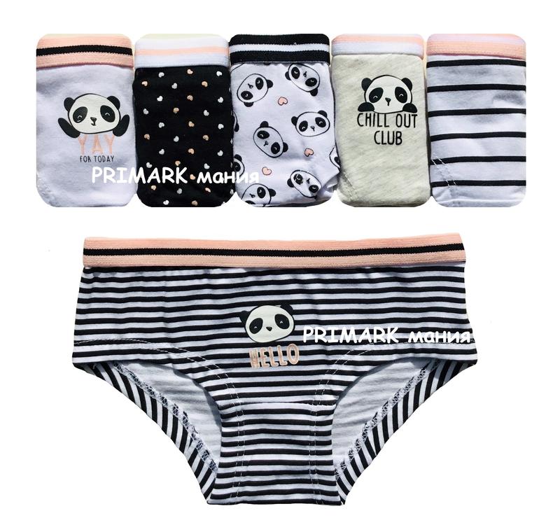 Primark Трусики шортики для девочки с принтом "Панда" Красивые расцветки 6 шт. в упаковке Материал мягкий, эластичный Резинка в поясе широкая, хорошо тянется Размеры: 92 см (1.5-2 года), 110 см (4-5 лет), 116 см (5-6 лет) Состав: 5 шт. 95% хлопок, 5% эластан 1 шт.55% хлопок, 41% полиэстер, 4% эластан Нижнее белье обмену и возврату не подлежит. Делайте выбор обдуманно Весь ассортимент трусиков для девочек https://shafa.ua/member/primark_mania/clothes?category=147