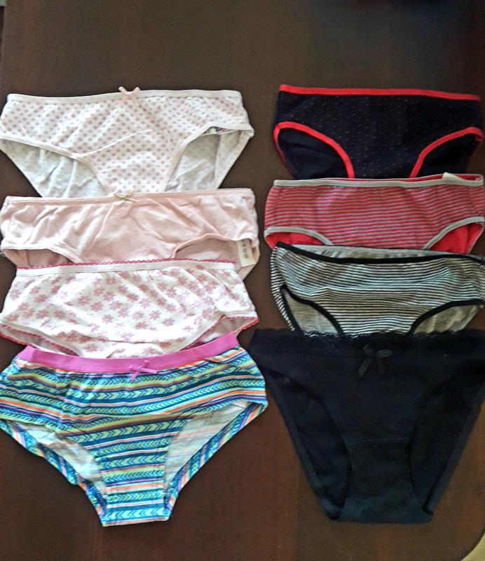 Трусики фирменные для девочки(8,9,10,11 лет), новые, без бирки. Дополнительные фото и замеры в кроватке. По 35 грн/шт Правый ряд (4 шт) на первом фото (полосати и черные), левый ряд - с розовой ромашкой - проданные