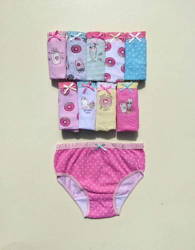 Трусики для дівчинки з принтами 10 шт. в упаковці Розміри: 98 см (2-3 роки), 110 см (4-5 років), 116 см (5-6 років), 122 см (6-7 років), 166 см (14-15 років). Склад: 9 шт. 100% бавовна 1 шт. 60% бавовна, 40% поліестер Доставка: Нова пошта: по суботам. Умови оплати: *По повній передоплаті на карту *По передоплаті 200 грн, решта накладеним платежем. Обміну та повернення немає.