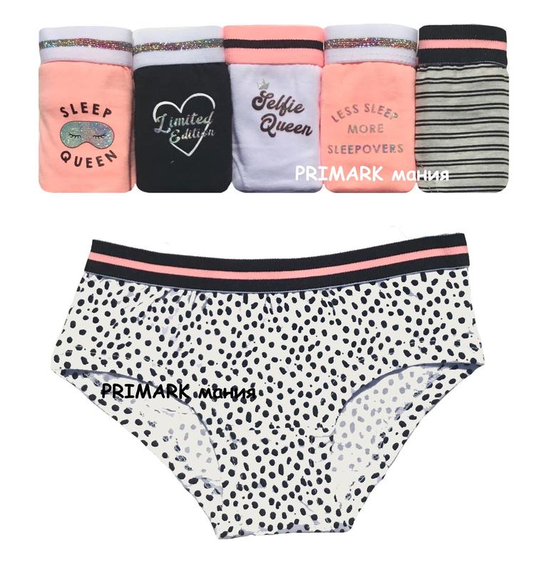 Primark Трусики шортики для девочки с принтом Красивые расцветки 6 шт. в упаковке Материал мягкий, эластичный Резинка в поясе широкая, хорошо тянется Размеры: 104 см (3-4 года), 110 см (4-5 лет), 116 см (5-6 лет) Состав: 3 шт. 95% хлопок, 5% эластан 3 шт. 57% хлопок, 38% полиэстер, 5% эластан В одной упаковке все трусики будут отличаться по замерам, т.к. рассчитаны на два года ношения ребенком Нижнее белье обмену и возврату не подлежит. Делайте выбор обдуманно Весь ассортимент трусиков для девочек https://shafa.ua/member/primark_mania/clothes?category=147