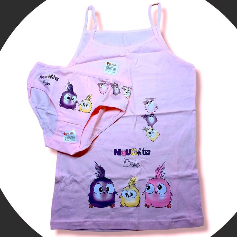 Дитяча білизна відмінної якості. Розмір за віком 10/11 . Виробник DONELLA, Туреччина. Моделі відшиті з якісної органічної бавовни. Анатомічно комфортні. Дитячий комплект майка і трусики для дівчаток з малюнком. Майки на тонких та широких бретелях, трусики прикрашені попереду маленьким бантиком. Склад тканини: 95%бавовна, 5%еластан. Розміри та малюнки треба узгоджувати. Розмірну сітку відправлю в повідомленнях. Дивіться також інші мої об'яви.