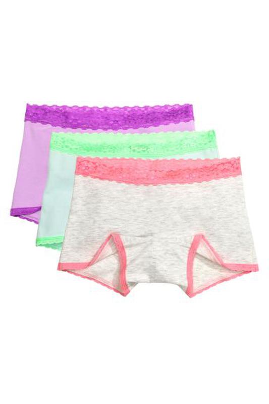 Набор трусиков -шорт фирмы H&M,размер на упаковке 12-14 лет. Отличный крой,кружево,хлопок,минимум швов. Пояс-32 Высота-21