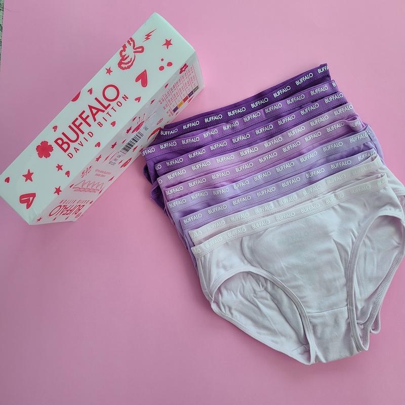 Оригінальні трусики для дівчинки від Buffallo Склад: 95% котон та 5% еластан В упаковці 9 шт, в наявнлсті в двох кольорових гамах Заміри на 6-7 років: ширина: 25 см висота: 19 см обхват по талії: від 56 до 58 см на вагу: 20-26 см