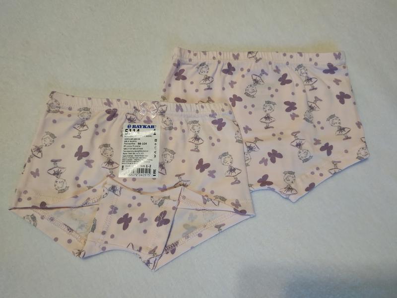 Трусики шорты для девочек фирмы Baykar. Цена за единицу товара 85 грн. размер 3: 5-6 лет , рост 122-128 см, Замеры: полуокружность по верху резинки 22 см, ПОБ 26 см, высота трусиков 18 см Состав: 95% хлопка, 5% эластана. Качество отличное. Если нужны дополнительные фото(фото на теле не делаю) или замеры, всегда отвечу, поэтому делайте покупку обдуманно. При покупке любой продукции белья от 6-ти единиц - скидка 3%. При следующей покупке скидка 3%.
