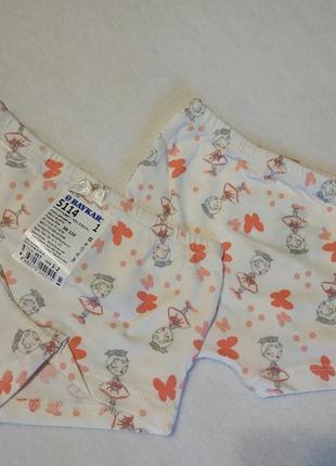 Трусики шорты для девочек фирмы Baykar. Цена за единицу товара 85 грн. размер 3: 5-6 лет , рост 122-128 см, Замеры: полуокружность по верху резинки 22 см, ПОБ 26 см, высота трусиков 18 см размер 4: 7-8 лет , рост 134-140 см, Замеры: полуокружность по верху резинки 23 см, ПОБ 27 см, высота трусиков 19 см Состав: 95% хлопка, 5% эластана. Качество отличное. Если нужны дополнительные фото(фото на теле не делаю) или замеры, всегда отвечу, поэтому делайте покупку обдуманно. При покупке любой продукции белья от 6-ти единиц - скидка 3%. При следующей покупке скидка 3%.