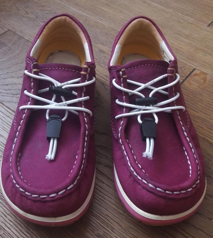 Туфельки шкіряні Ессо оригінал розмір 32, устілка шкіра , не знімна 20 див. Індонезія. Зручна шнурівка-гумка з фіксаторами. Стан відмінний, в шкарпетці були осінь. Фото реал.