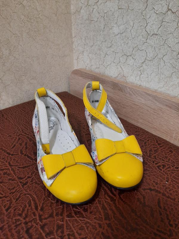 Очень красивые и праздничные туфельки на девочку! Натуральная кожа,супинатор!! Носили мало.состояние очень хорошее