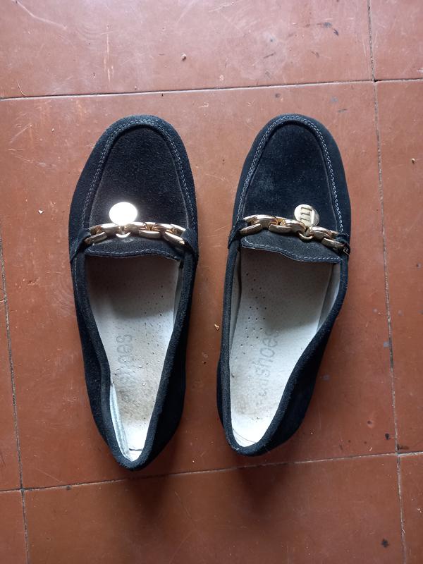 Продам туфли замшевые,черные,размер 35.Состояние идеальное.Длина стельки 23см.Пряжка красивая,подошва крепкая