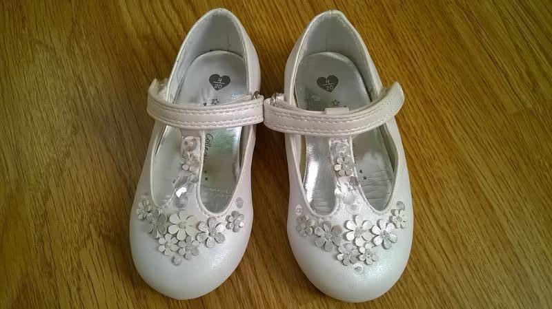Нарядні блискучі дитячі туфелькі для дівчинки в ідеальному стані. Взувалися одного разу для хрещення. Підошва 13,5см. Вишлю.