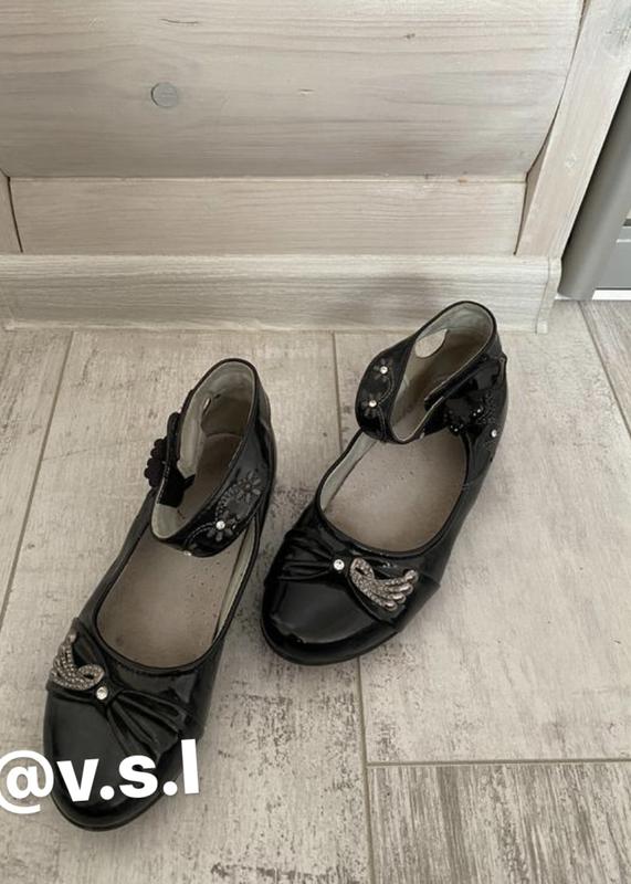 фото на теле нет Туфли подойдут для выступлений Застёгиваются на липучках с боку Носики округлённые Есть неброский серебристый дэкор Есть небольшой супинатор По факту размер 34-35 ориентируйтесь по замеру стельки Стелька 22,5 см) Высота сзади 10 см) Ширина подошвы 7,5 см) Следы носки незначительные на фото видно в цене учтено