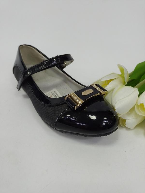 Детские туфли для девочки черного цвета с небольшим каблучком. Регулируются липучкой. Ортопедическая стелька. Размер : 35