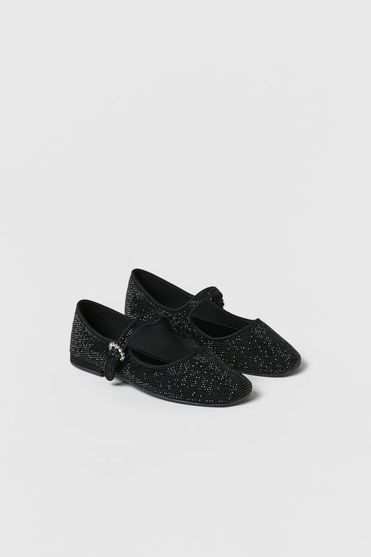 Черные балетки со стразами. Ремешок на подъеме, блестящая пряжка. Резиновая подошва. ZARA 36 ВЕРХ 100% ПОЛИЭСТЕР ПОДКЛАДКА 100% ХЛОПОК