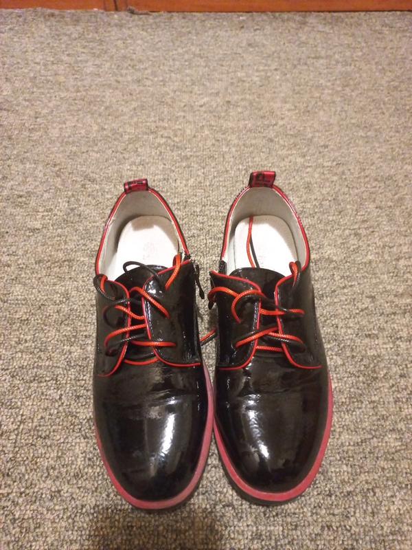 Лаковані туфлі на шнурівці, розмір пише 37, але ідуть на 36.(маломірять),у дуже хорошому стані, сліди шкарпетки присутні, але практично не замітні.