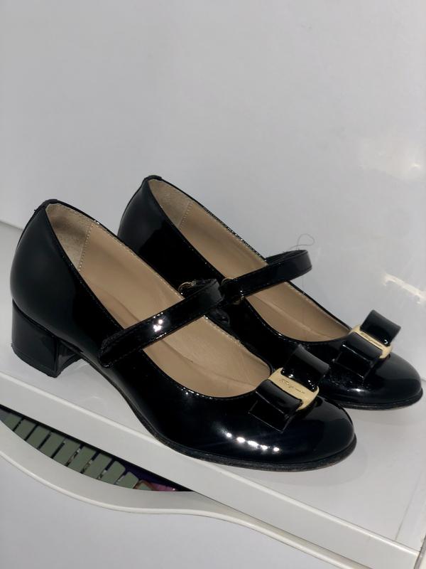 Невероятно красивые туфли из лакированной кожи итальянского бренда Salvatore Feragamo. У вашей девочки будет невероятное настроение - ведь они еще и на каблуке) Каблук 3 см, но он не будет ощущаться из-за удобной колодки. Покупали на 1 сентября .Состояние -идеальное .