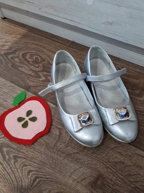 Туфли 36 размера, длина по стельке 23. На носочках видны незначительные следы носки. Застежка на липучке