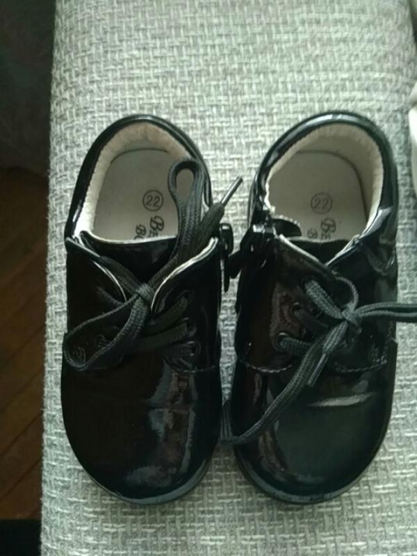Лакированные, кожаные туфли для девочек 22 размер с шнуровками и с одной стороны замок.