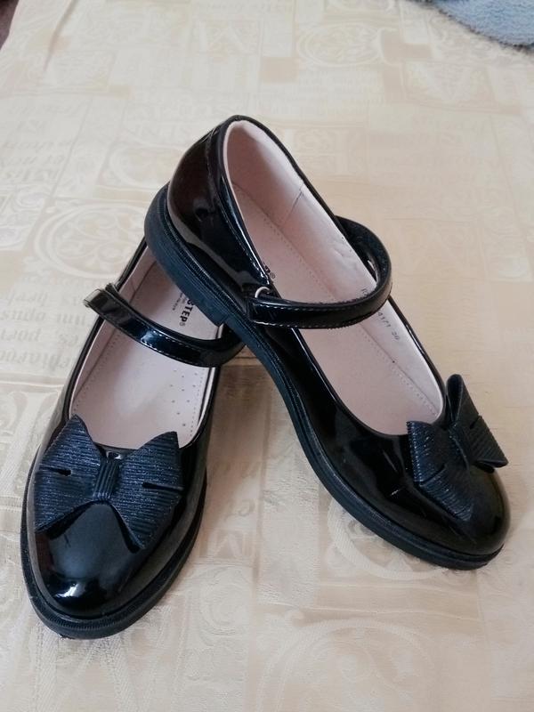 Чорні лаковані туфлі з бантом,стелька шкіряна з супінатором,стан ідеальний,не підійшов розмір