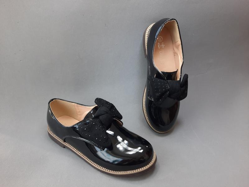 Туфельки ТМ Clibee Верх - якісна еко шкіра, лакована Всередині - пресована шкіра Ортопедична устілка з супінатором Підошва з каблучком Заміри устілки: 32 - 20,5 см продані 33 - 21.0 см продані 34 - 21,5 см 35 - 22,0 см продані 36 - 22,5 см продані 37 - 23,0 см продані