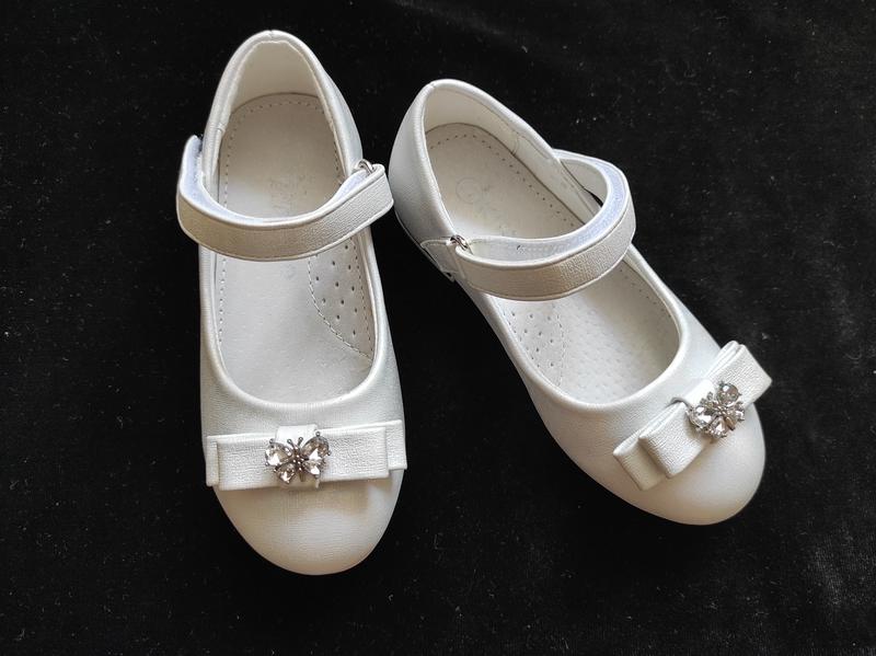 Туфлі для дівчинки на розмір ноги 25 (розмір 27, але маломірять). Ідеальний стан. Взуті лише раз на свято в садочку. Підошва 16,5 см. устілки не виймається.