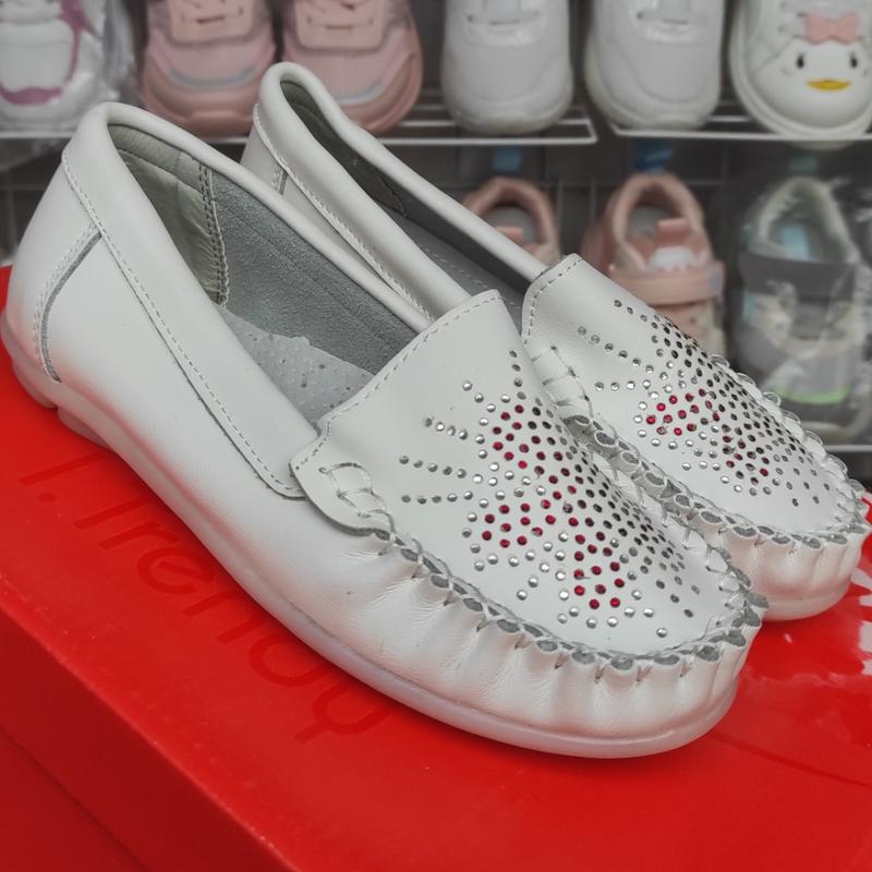 Белые кожаные деми туфли мокасины для девочки