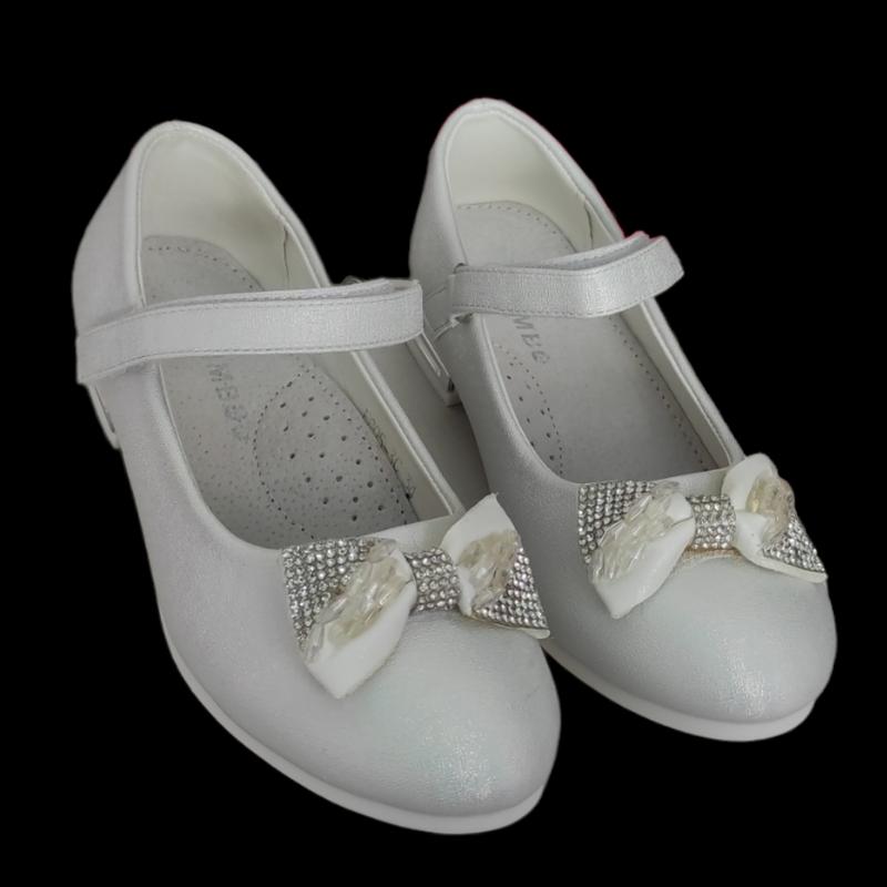 Детские туфли лодочки балетки для девочки белые молочные блестящие праздничные маломер
