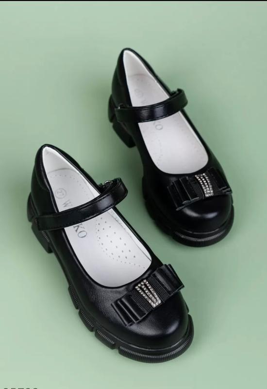 Туфли для девочек Бренд: W/Niko Страна производитель - Китай Цвет - черный Материал верха - экокожа Лак Застежка-липучка Стелька - кожа, без супинатора Доп.информация ; высота каблука- 3,5 см Ширина по стельке 6 см Подошва - ПВХ Размерная сетка: 27-32 Замеры по стельке: 27 размер 18 см 28 размер 18,5 см 29 размер 19 см 30 размер 19,5 см 31 размер 20 см 32 размер 20,5 см Делаем замеры одной ростовки.