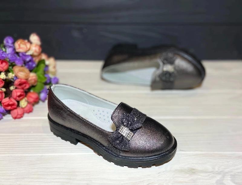 В наличии Туфельки для девчонок на каблучке Верх качественный кож зам Стелька кожаная с супинатором Цвет бронза Лёгкие и удобные 33-20 см 34-20,8 см