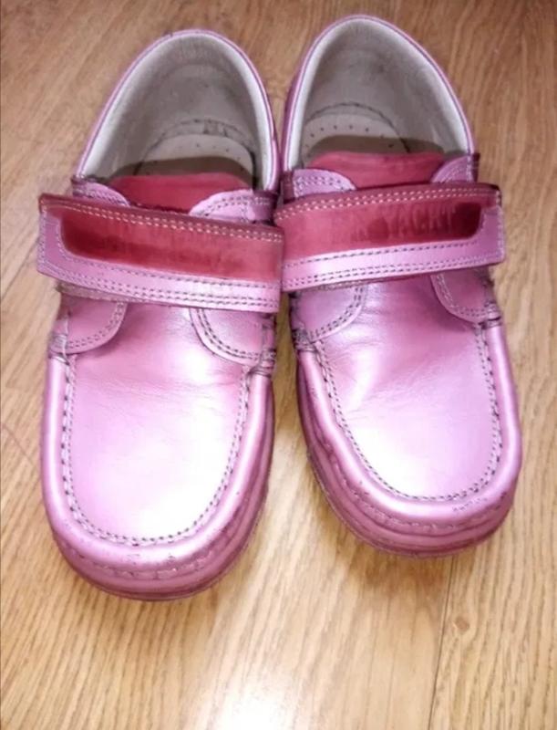 Туфлі мінімен. Кожа, супинаторы 28 размер, стелька не снимается. Цвет розово перламутровый. Стан идеален, одевали очень редко. На одному стерта фарба. На фото видно.