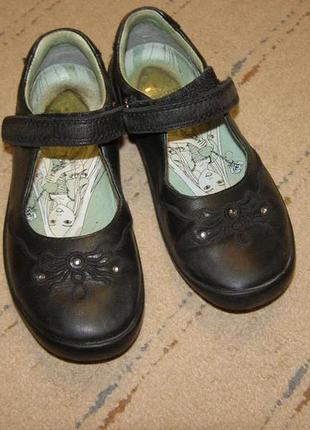 Красивые, качественные, удобные как тапочки туфельки для девочки. Размер 28. стелька тоже кожа, мятного цвета с принцессой. Спереди вышивка с декором. подошва резина, полнота регулируется липучкой. Подойдет на худую и средней полноты ногу.