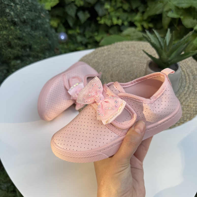 Ніжні рожеві сліпони! Верх- екошкіра, перфорація. Не навскрізна. Устілка- текстиль. Підошва – резина. Якісні, зручні та практичні, застібка- липучка. Заміри: 31- 17,5см 32 – 18,2см 33 – 18,8см 34 – 19,3см 36 – 20,1см