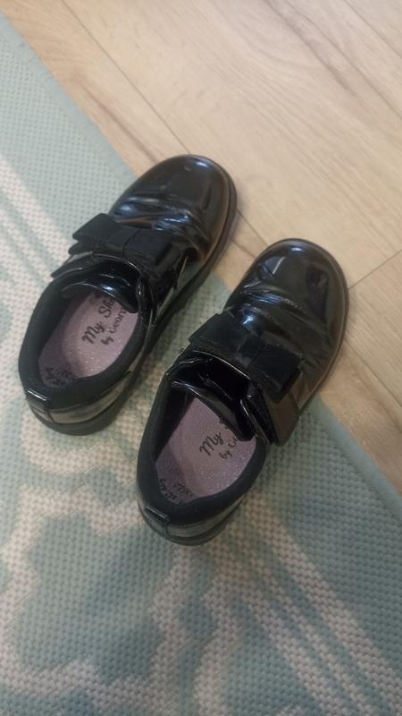 Лакированная искусственная кожа шикарного качества состояние хорошее, без дефектов. Носила дочь один сезон и то почти всегда в помещении школы. стелька 18,5 см очень легкие и невесомые, подошва гибкая застежки липучка заказывали в байера.